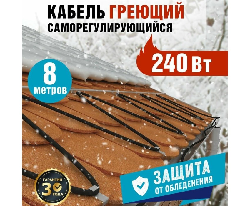 REXANT Кабель греющий саморегулирующийся модель SRL POWER Line 30SRL-2CR, 8м/240Вт