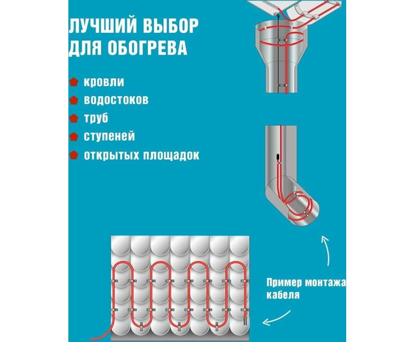 Запрещается устанавливать нагревательный кабель способами и в условиях, которые могут привести к механическому повреждению внешней оболочки, например, за счет сжатия, перетирания, растяжения, перехода через острые края. При установке на поверхности трубы витками необходимо отслеживать минимальный радиус изгиба кабеля – 40 мм.