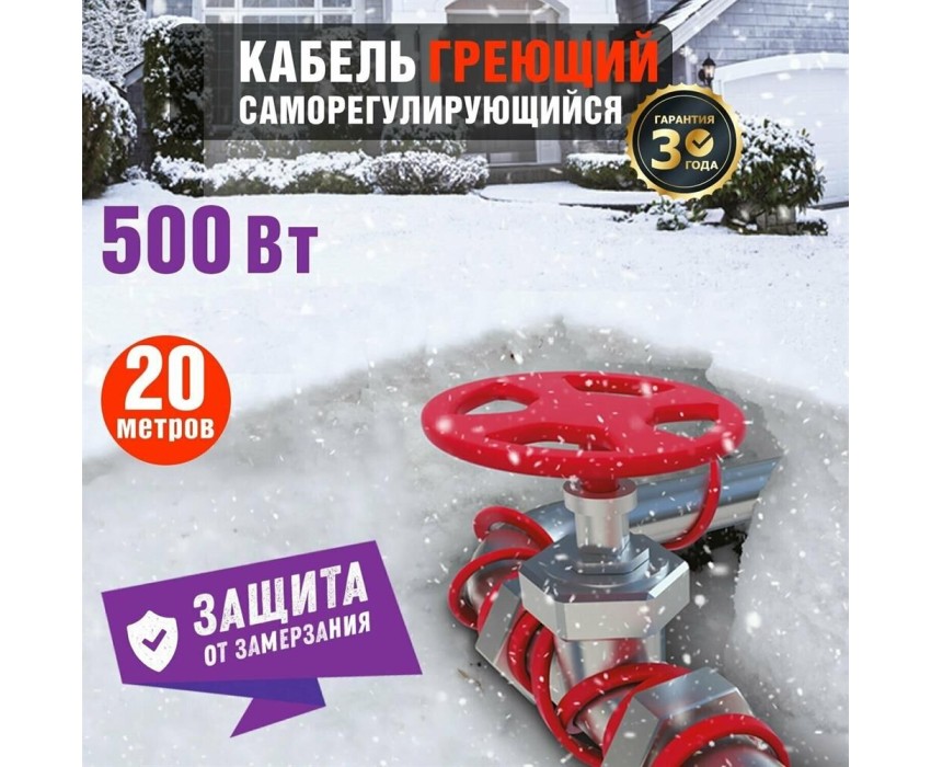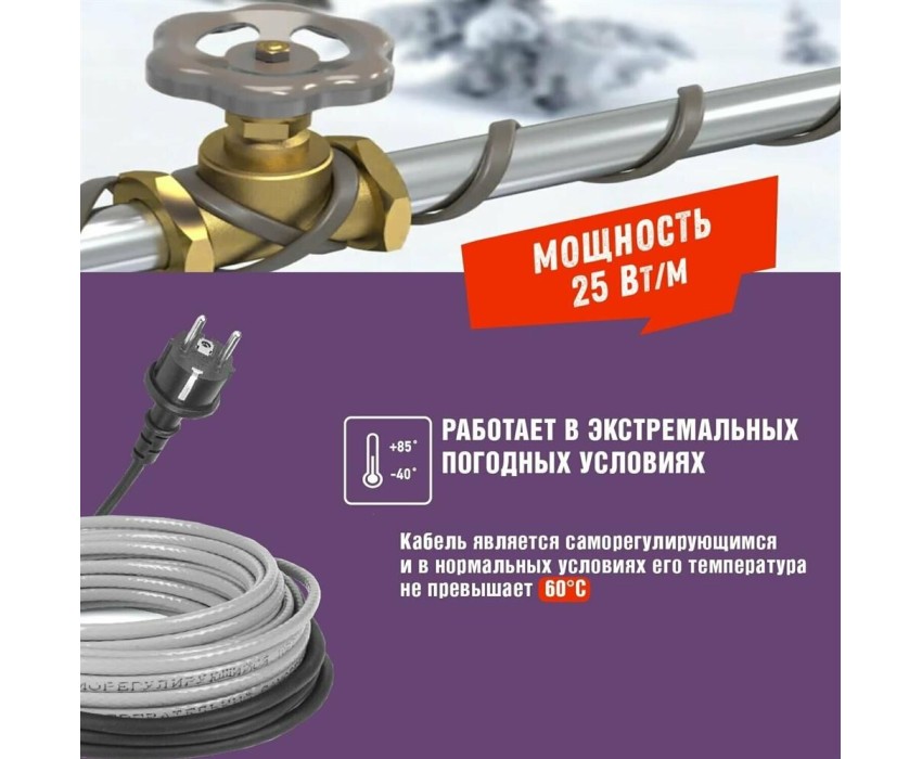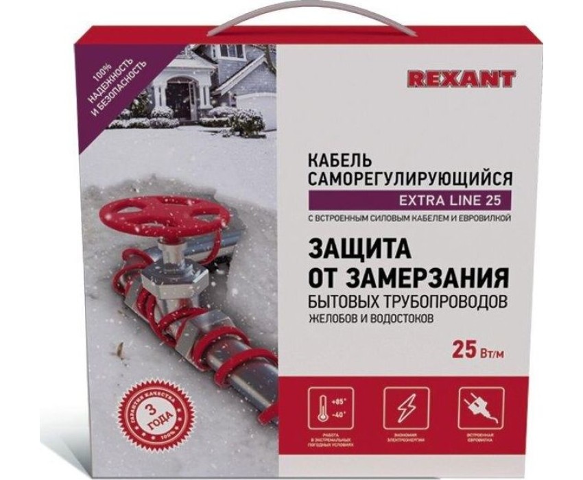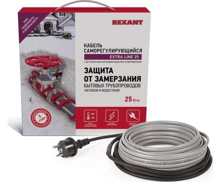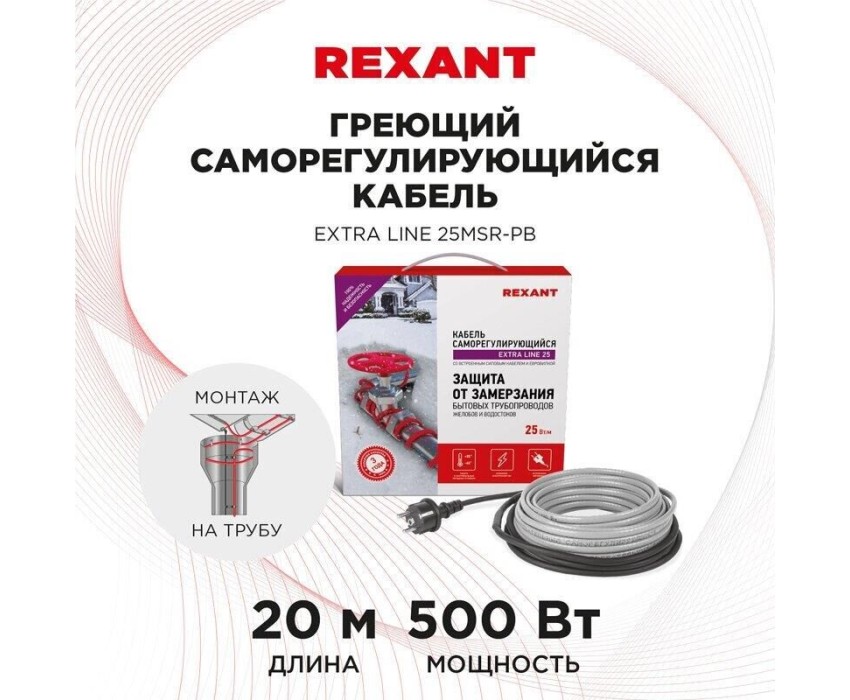 REXANT Кабель греющий саморегулирующийся модель SRL Extra Line 25MSR-PB, на трубу, 20м/500Вт