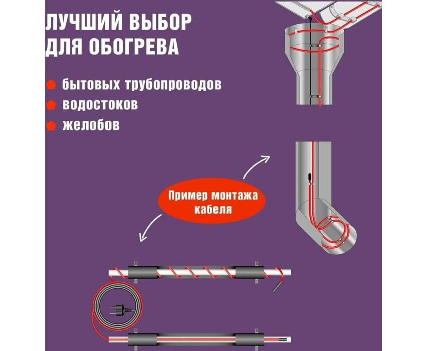 Запрещается устанавливать нагревательный кабель способами и в условиях, которые могут привести к механическому повреждению внешней оболочки, например, за счет сжатия, перетирания, растяжения, перехода через острые края. При установке на поверхности трубы витками необходимо отслеживать минимальный радиус изгиба кабеля – 40 мм.