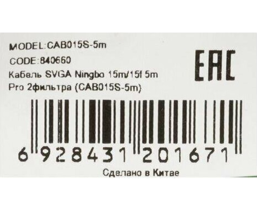 NINGBO Кабель-удлинитель SVGA CAB015S-5m, VGA (m) - VGA (f), ферритовый фильтр , 5м