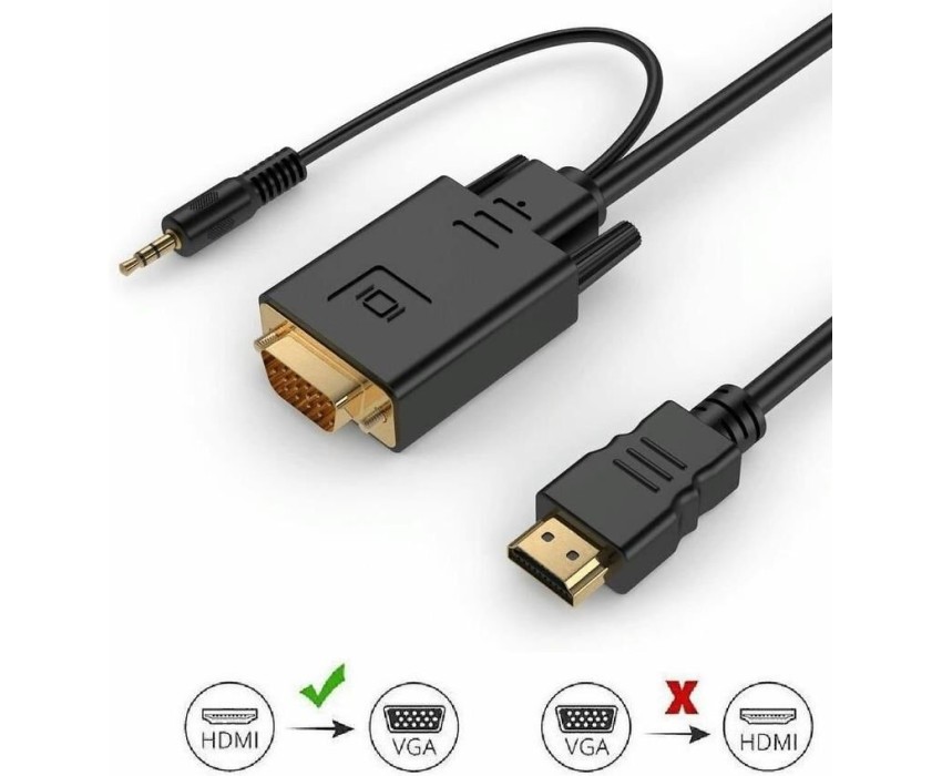 Тип: Кабель-переходник. Функциональный тип: аудио-видео. Сечение кабеля: круглое сечение. Длина кабеля: 1.8. Цвет: черный. Гарантия: 3 мес.. Разъем 1: HDMI (m). Разъем 2: VGA (m)