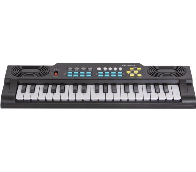 Детский электронный синтезатор, 37 Клавиш, Полифония 2 голоса, 8 тембров/8 Ритмов/4 ударных инструмента, 22 Демо мелодии, Запись и воспроизведение, Микрофон в комплекте, Источник питания: 4 батарейки типа АА (не входят в комплект) / 5В USB, Габариты 430x160x45 (мм)
