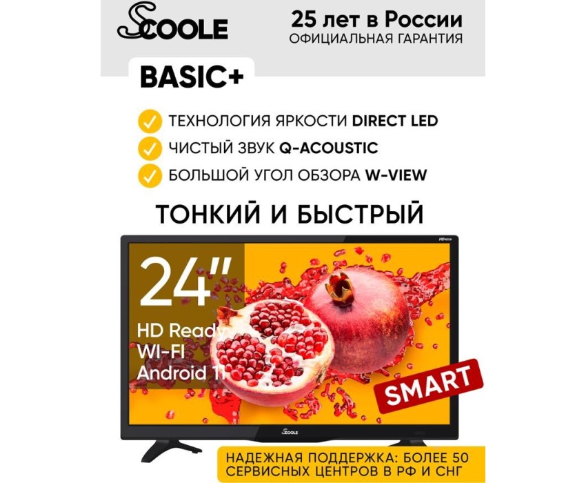 Телевизор SCOOLE SL-LED24S01T2S HD SMART TV