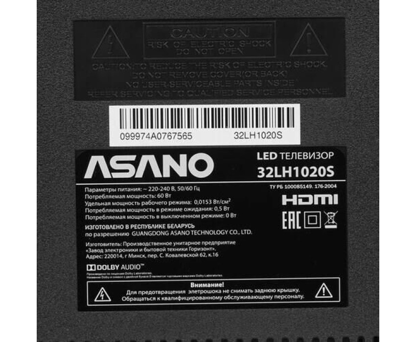 Телевизор LCD 32" HD 32LH1020S ASANO