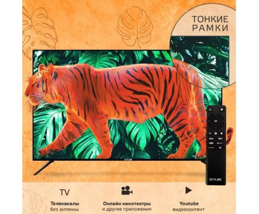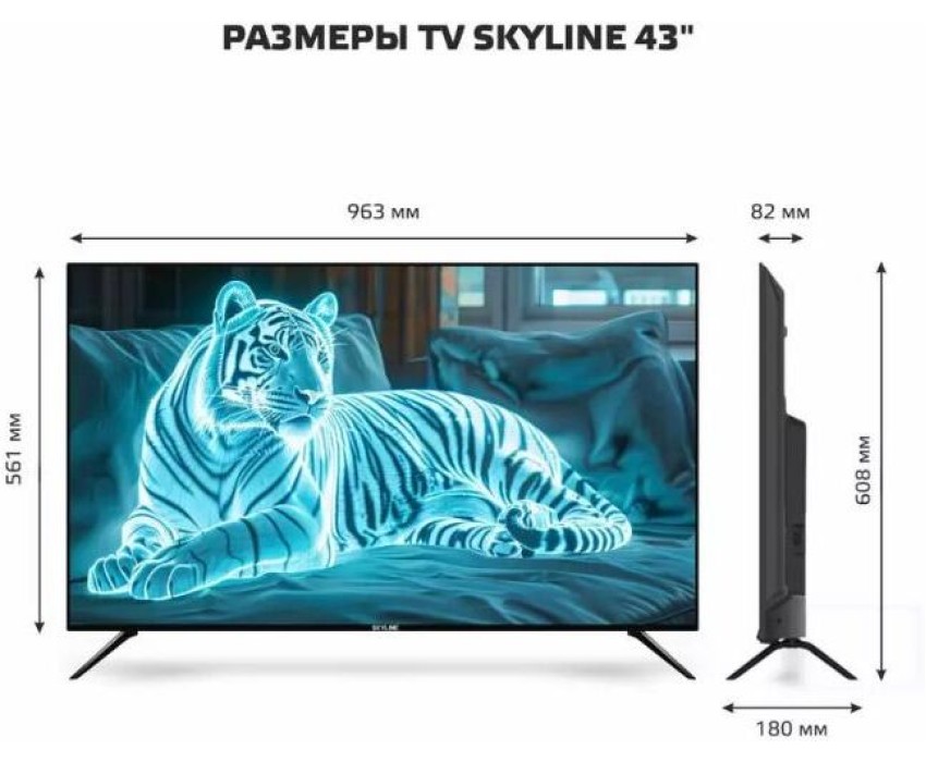 "Диагональ экрана 43"" (108 см) Frameless,Android11Sber/voice assistant,1GB+8GB Bluetooth 5.0 Системы цветности аналогового ТВ: SECAM, PAL Системы цветности для AV: NTSC, PAL Цифровой тюнер DVB/Т2/C SMARTTV Wi-Fi Декодеры стереозвука NICAM, А2, АСЗ Формат изображения: 16:9 Разрешение экрана 1920х1080 Контраст 1200:1 Яркость 250 кд/м2 Угол обзора (гор/верт) 178°/178° Цифровой 3D фильтр Количество цветов 16.7 млн. Время отклика 8 мс Меню на русском, английском языках Телетекст Аудио 2 х 8 Вт Входы/выходы: Антенный вход Композитный AV вход mini Аудио выход 3.5мм 3 х HDMI 2 х USB CI слот LAN SPDIF Питание: Напряжение 100-240В 50/60Гц Максимальная потребляемая мощность 74 Вт Потребляемая мощность в режиме ожидания - 0,5 Вт Удельная мощность рабочего режима: 0,013 Вт/кв.см Потребляемая мощность в выключенном режиме: О Вт Размеры с подставкой: 963х608х180мм Размеры без подставки: 963х561х82 мм Вес: 6,7 кг VESA: 200х200 мм"