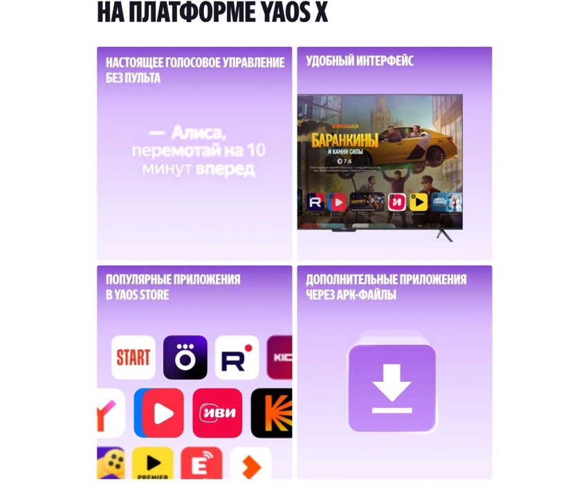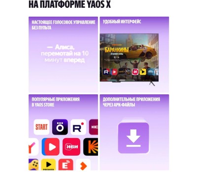 Цвет: черный | Потребляемая мощность, Вт: 100.00 | Класс энергопотребления: B | Тип матрицы: VA | Формат экрана: 16:9 | Область обзора по горизонтали: 178.00 | Размер экрана: 43" | Частота обновления: 60 Гц | Подсветка экрана: да | Яркость, кд/м2: 320 | Контрастность: 5000:1 | Колонки: да | Ширина, мм: 958.00 | Wi-Fi: 802.11a/b/g/n/ac | Bluetooth: да | Операционная система: YaOS X | Оперативная память: 2Гб | Наличие USB 2.0: 2.00 | Размер экрана телевизора в сантиметрах: 108см | Максимальное разрешение: 3840x2160 | Встроенная память: 32 | Объем упаковки, м3: 0.09114 | Вес упаковки, кг: 15 |