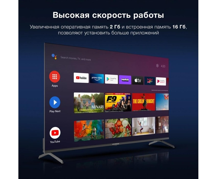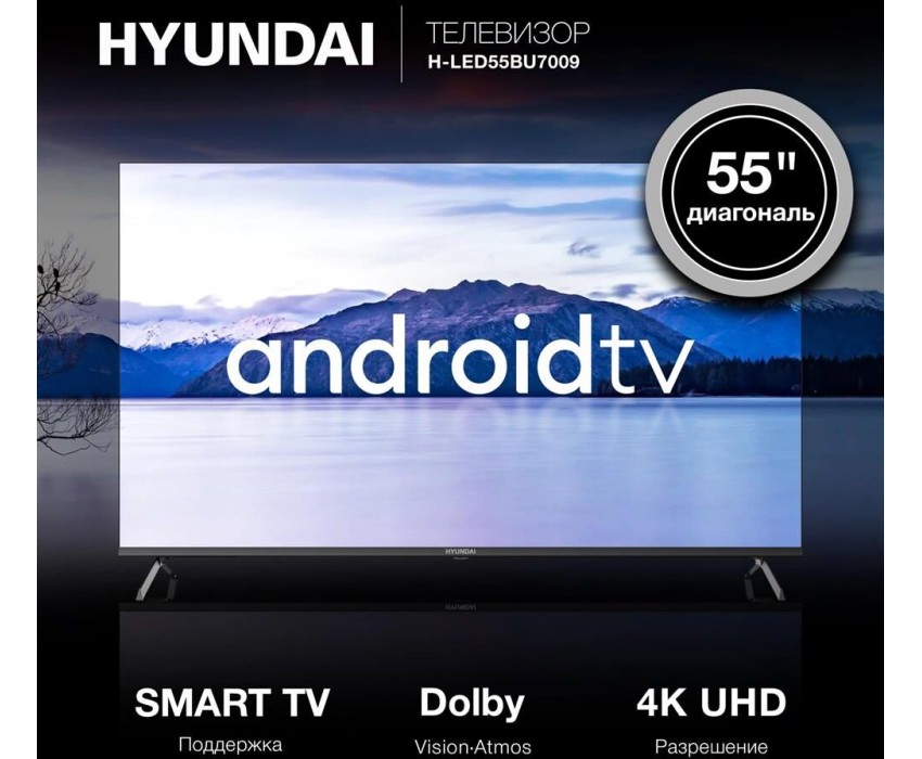 Телевизор LED Hyundai 55" H-LED55BU7009 Smart Android TV Frameless Metal черный/4K Ultra HD/60Hz/DVB
