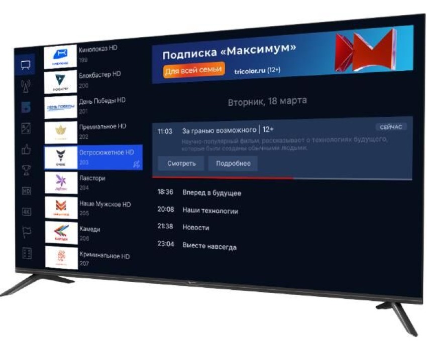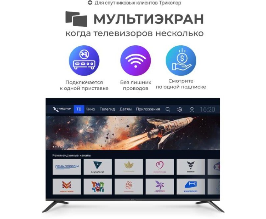 Телевизор Триколор H55UC2, SMART TV, 55", Ultra HD, 4K, голос, черный