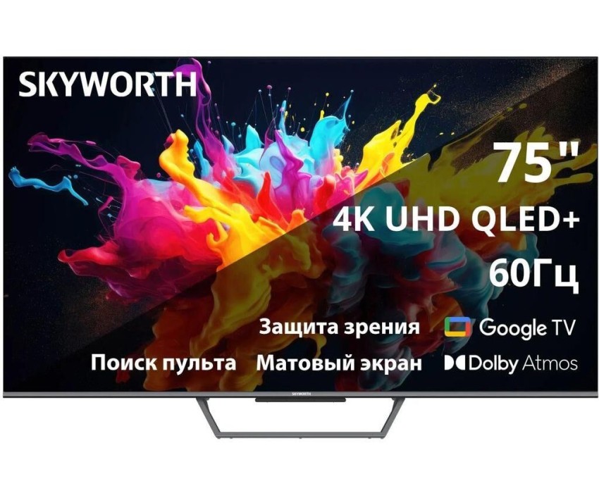 SKYWORTH Телевизор QLED 75" 75Q67G Google TV Frameless черный/серый 4K Ultra HD 60Hz DVB-T DVB-T2 DVB-C DVB-S DVB-S2 USB WiFi Smart TV