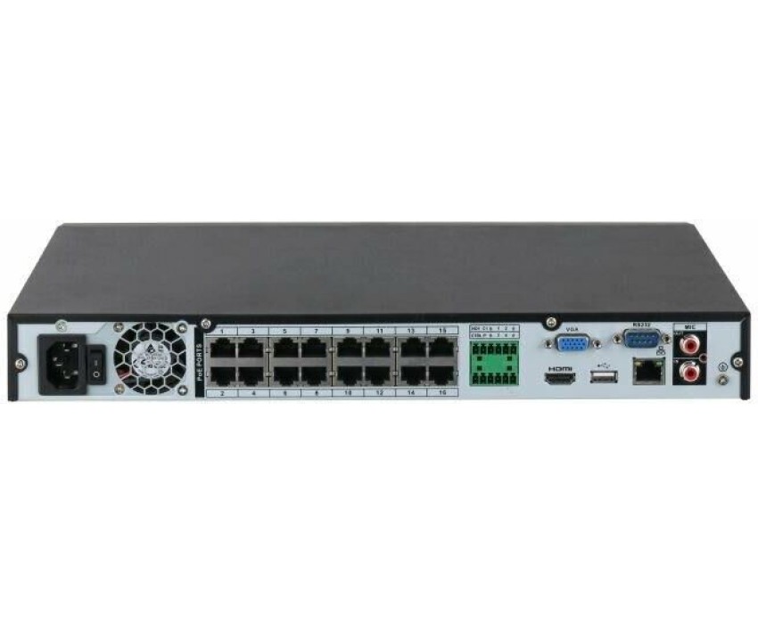Количество слотов для HDD: 2. Максимальная емкость HDD: 6. Количество установленных HDD: не установлены. Сетевые протоколы: HTTP, HTTPS, TCP/IP, IPv4/IPv6, UPnP, RTSP, UDP, SMTP, NTP, DHCP, DNS, IP Filter, PPPoE,DDNS, FTP, IP Search (Support Dahua IP camera, DVR, NVS, etc.), Easy4ip.. Поддержка PoE: есть. Разъемы USB 2.0: 1. Разъемы USB 3.0: 1. Тревожные входы/выходы: 4/2. Разъемы HDMI: 1. Разъемы VGA: 1. Количество каналов записи: 16. Форматы сжатия: H.265/H.264. Ширина товара: 375. Высота товара: 53. Глубина товара: 327.5. Вес (без жестких дисков): 2.7. Порт RJ-45, тип: Gigabit Ethernet. Тип видеорегистратора: NVR (сетевой). Колличество SATA: 2. Разрешение: 8Мп/6Мп/5Мп/4Мп/3Мп/1080P/1.3Мп/720P.. Удаленные соединения: 128. Питание: 220-240В. Энергопотребление (без жестких дисков): 13.2. Операционная система: Linux. Количество LAN-портов: 1. Режим записи: Вручную, по расписанию, по тревоге.. Битрейт видео: 16кБит/с ~ 20 МБит/с. Габариты упаковки (ед) ДхШхВ: 0.45x0.145x0.43. Вес упаковки (ед): 3.4. Гарантия: 12 мес.. Процессор: 4-х ядерный. Каналов записи: 16. Слотов для HDD: 2. Тип видеорегистратора: NVR (сетевой)