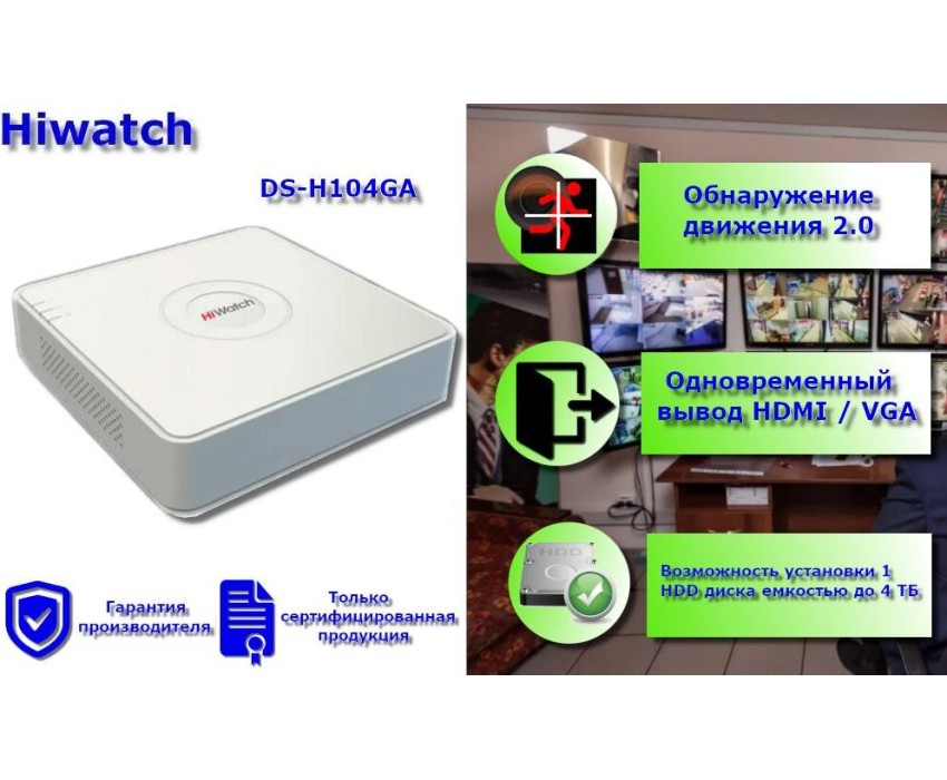 Видеорегистратор HIWATCH Видеорегистратор HVR (гибридный) DS-H104GA(B)