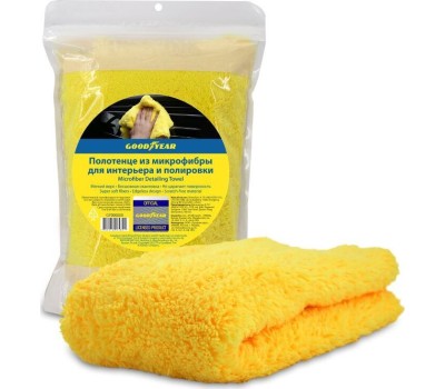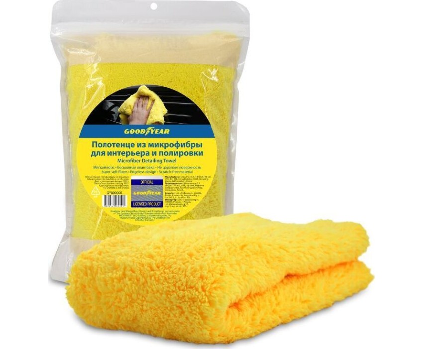 Полотенце из микрофибры для интерьера и полировки Goodyear 40x40 см (450 г/м2) Мягкое (плюшевое) полотенце из микрофибры Goodyear предназначено для полировки различных типов поверхностей. Полотенце с необработанными краями, без маркировок и бирок абсолютно безопасно для поверхности автомобиля и идеально для работы с различными защитными покрытиями. Мягкая микрофибра высокого качества бережно удаляет остатки полиролей, силанта, воска и других продуктов, исключая при этом появление царапин. Полотенце упаковано в пакет с zip-lock, в котором удобно хранить изделие в автомобиле.