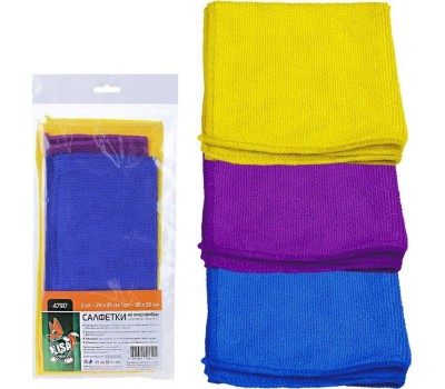Салфетки из микроволоконной ткани предназначены для сухой и влажной уборки салона автомобиля и дома. Не оставляют разводов, безопасны для любых покрытий.Отлично чистят, легко моются и быстро сохнут. Состав: полиамид 20%, полиэстер 80%.В комплекте 3 салфетки из микрофибры: 2 штуки 25х25 см; 1 штука 30х30 см.