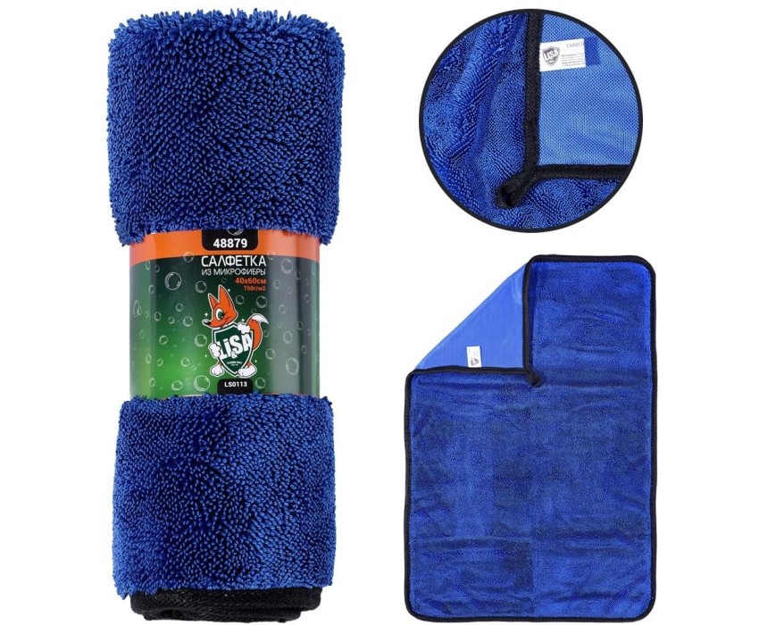 Салфетка для автомобиля LI-SA LS0113 из суперплотной микрофибры для чистки, сушки и полировки кузова 40х60см, высокий ворс, плотность 750г/м2 48879