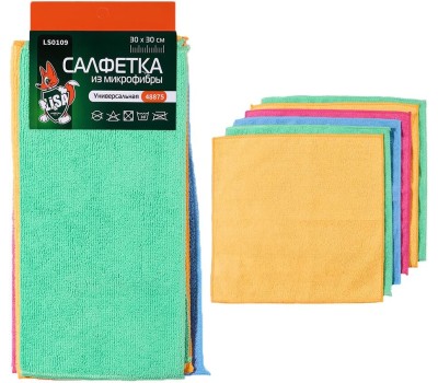 Набор салфеток LI-SA LS0109 из микрофибры в наборе (6 шт-30х30см), плотность 200г/м2 48875
