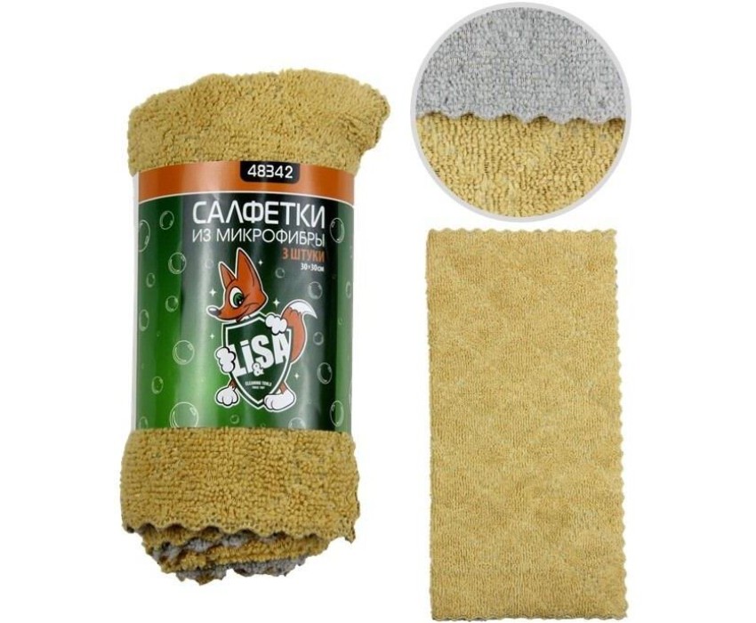Набор салфеток LI-SA из экстраплотной микрофибры в наборе (3 шт-30х30см) универсальные, плотность 300г/м2 48342