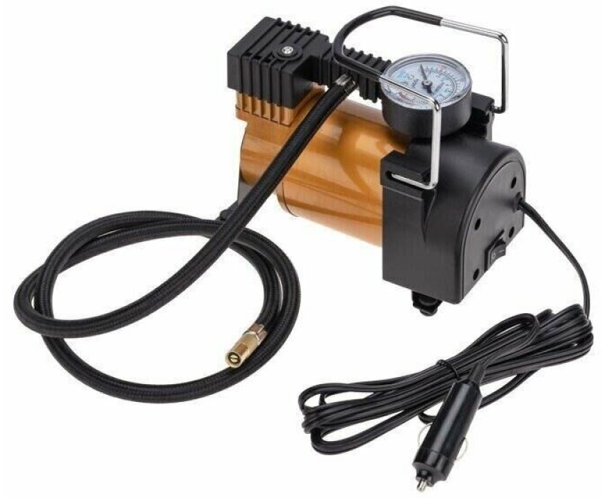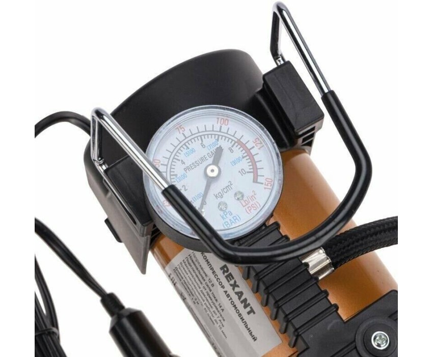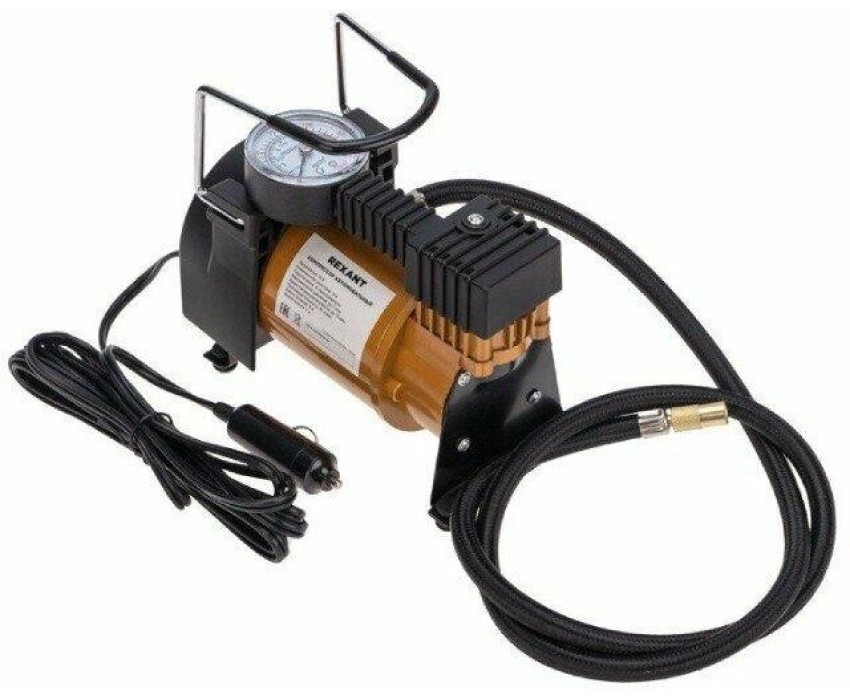 Компрессор автомобильный металлический 40л/мин в прикуриватель REXANT используется для подкачки автомобильных шин. Устройство оснащено мощным электрическим двигателем и повышенной системой безопасности. Прибор рассчитан на длительную эксплуатацию в суровых климатических условиях. В комплекте поставляются переходники для накачивания мячей, матрасов, резиновых лодок и т.д. Особенности: защита от перегрева; можно использовать для больших колес. Напряжение - 12В Номинальная сила тока - 14А Подключение - от прикуривателя Максимальное давление - до 7 Атм Время непрерывной работы - до 15 мин. Производительность - 40л/мин Длина провода - 3м Длина шланга - 1м Компрессор автомобильный - 1 шт. Упаковка - 1 шт. Паспорт изделия - 1 шт. Насадки - 3 шт.