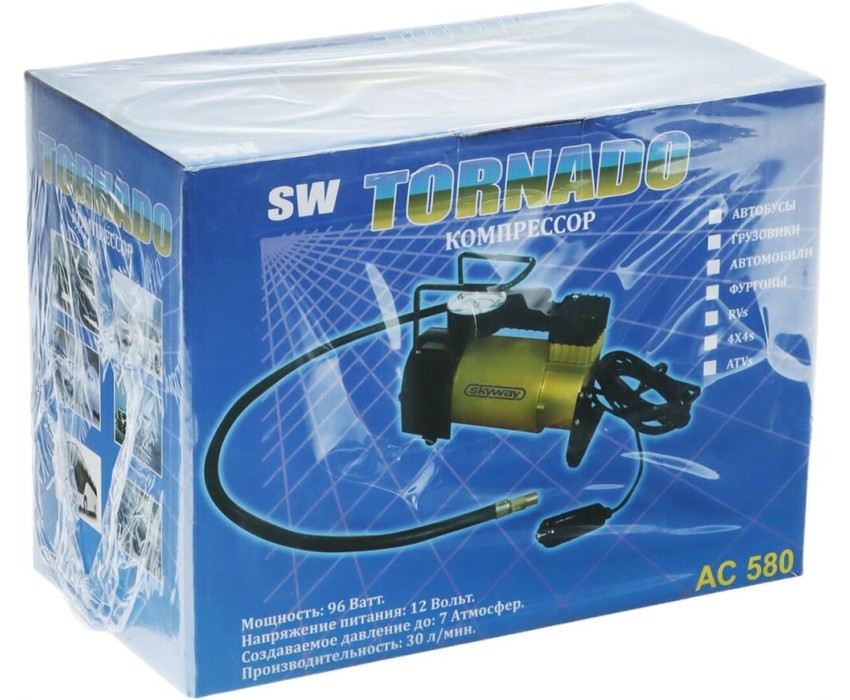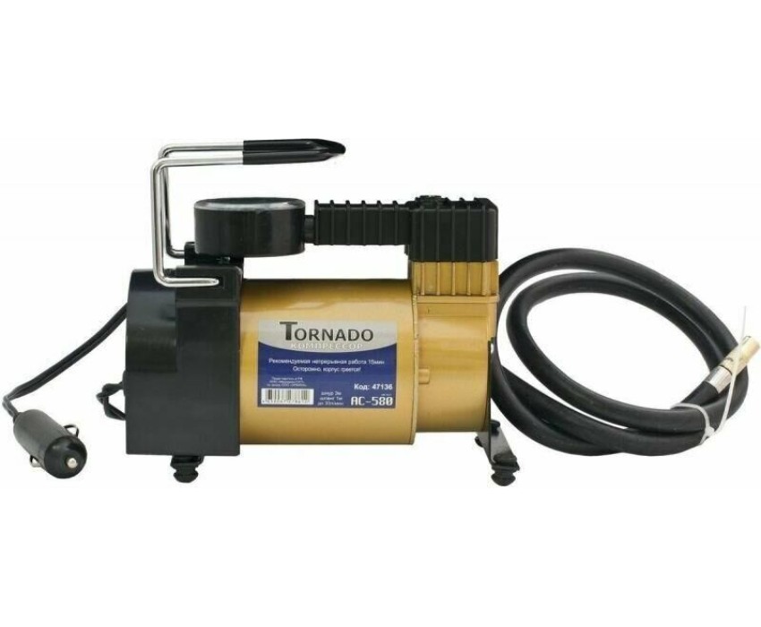 Автокомпрессор TORNADO АC-580 10 A, 35 л/мин, 140 PSI, 12В металл. корпус (с сумкой) 44199
