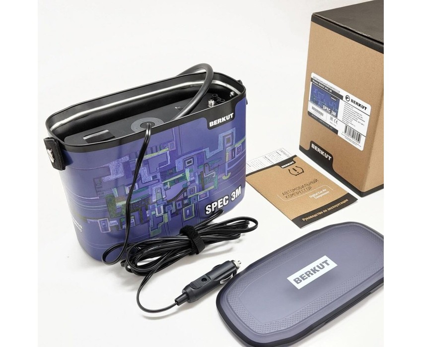 BERKUT SPEC-3M – стильный и мощный автомобильный компрессор, с новым электродвигателем с низким потреблением и производительной поршневой камерой, не требующей смазки, с электронным управлением, с встроенной системой охлаждения.