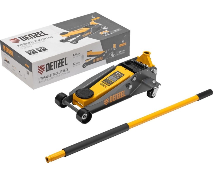 Домкрат DENZEL Домкрат гидравлический подкатной, 3 т, 125-470 мм, быстрый подъем, проф. 51260