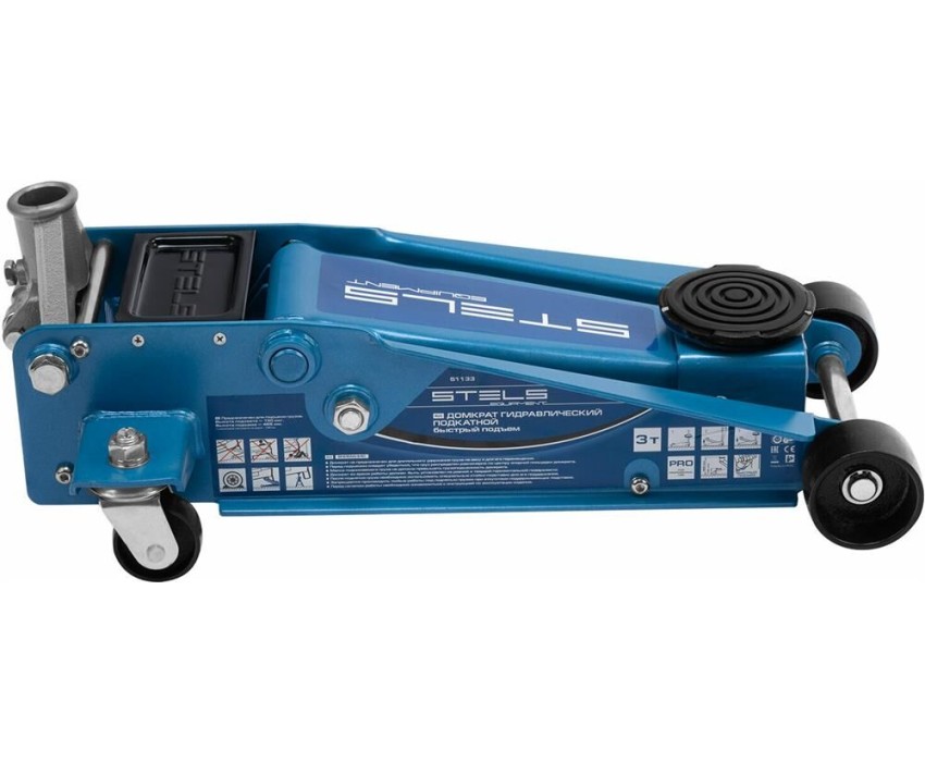 Профессиональный подкатной гидравлический домкрат Stels QUICK LIFT 51133 используется для быстрого подъема на высоту 130-465 мм всех типов автомобилей со стандартным клиренсом и массой до 3 тонн. Благодаря системе QUICK LIFT для достижения предельной высоты достаточно 7 качков рукоятки. Домкрат подходит для использования на станциях техобслуживания и шиномонтажа.Преимущества Аккуратная работа — резиновая опора и прорезиненная ручка защищают кузов автомобиля и корпус домкрата от повреждений. Надежная конструкция — карданная передача обеспечивает долговечность домкрата, двухплунжерный насос сохраняет работоспособность даже при выходе из строя одного из плунжеров — домкрат будет работать за счет второго. Защита от перегрузок — предохранительный клапан не позволяет поднимать грузы тяжелее 3 тонн. Долговечность — хромированные штоки и резиновые сальники устойчивы к износу. Дополнительные возможности — в специальный лоток для мелких деталей можно сложить болты и гайки. Подтвержденное качество — домкрат прошел тестирование с 25%-м превышением допустимой нагрузки.