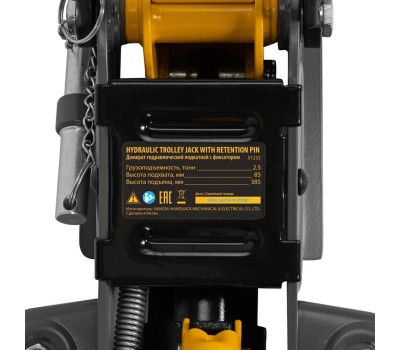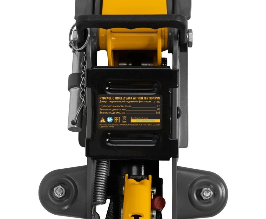 Домкрат гидравлический DENZEL Домкрат гидравлический подкатной с фиксатором, 2,5 т, 85-385 мм 51232