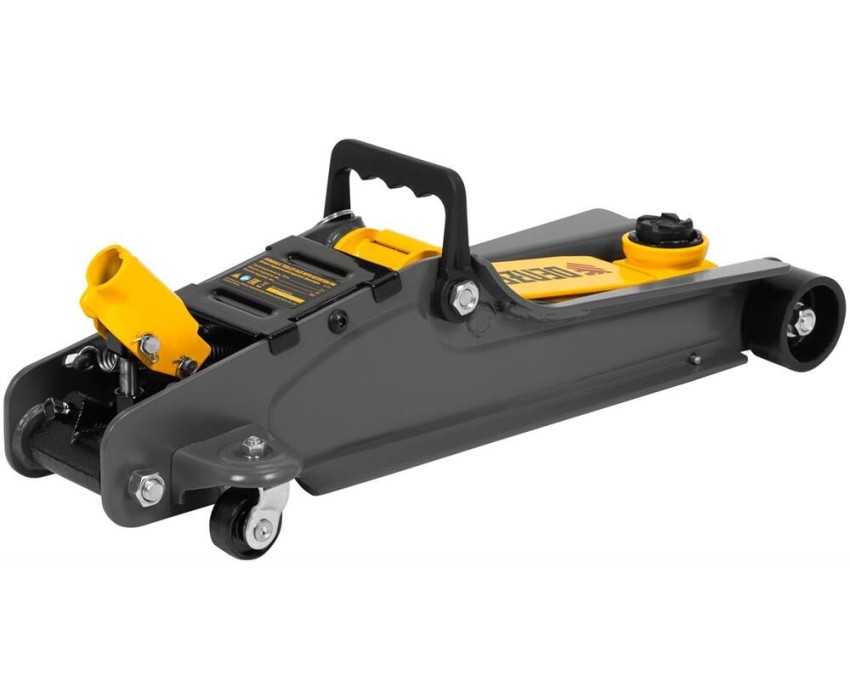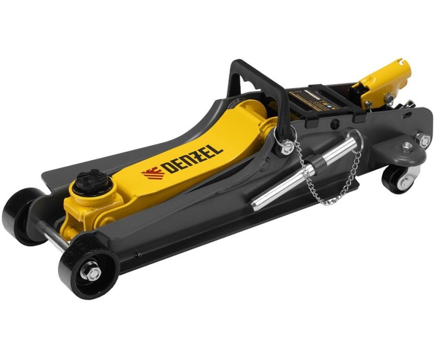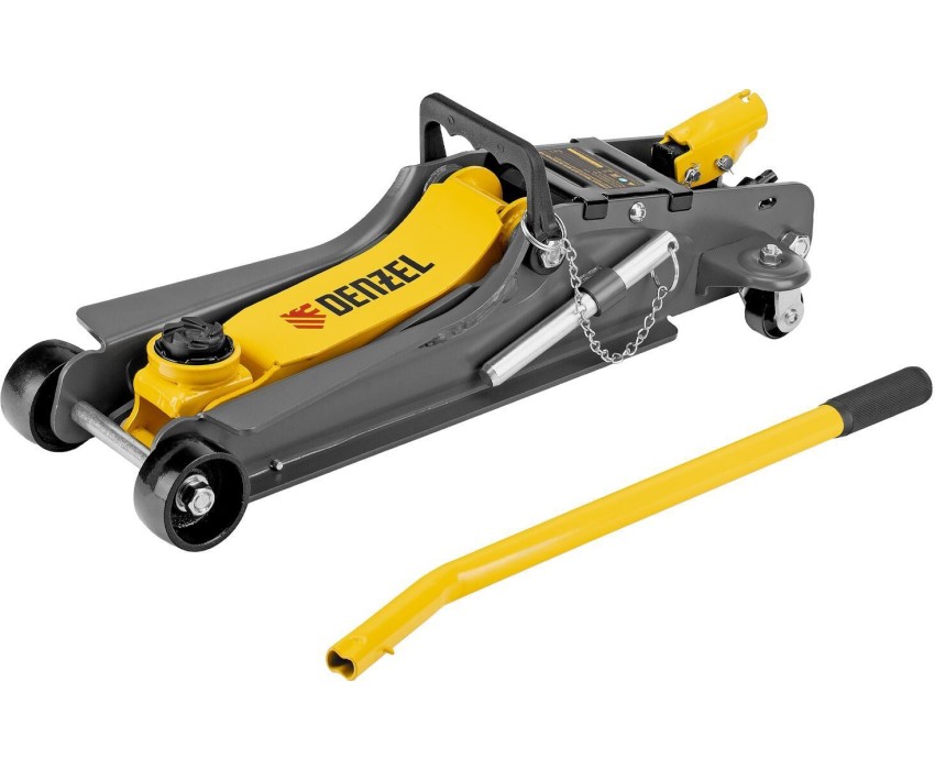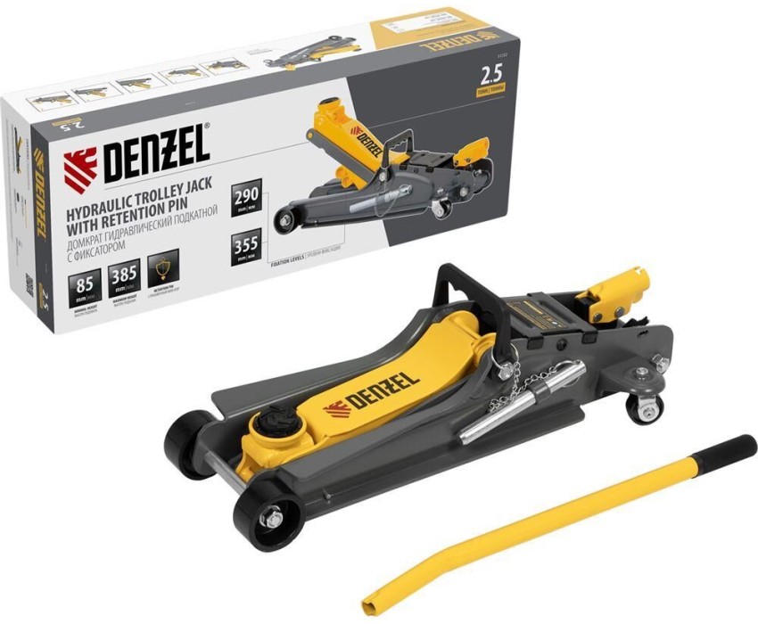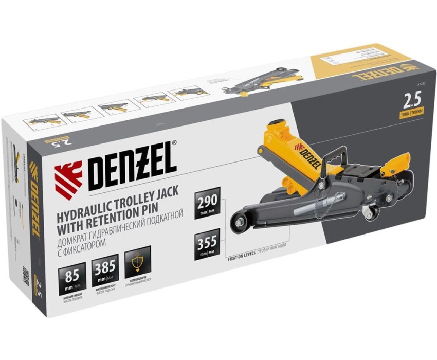 Гидравлический подкатной домкрат Denzel 51232 с фиксатором имеет высоту подхвата 85 мм и предназначен для плавного подъема грузов массой до 2,5 т на высоту до 385 мм. Страховочный штифт позволяет фиксировать подъемный рычаг на высоте 290 и 355 мм для безопасной работы. Домкрат пригодится владельцам легковых автомобилей с низким и стандартным клиренсом.