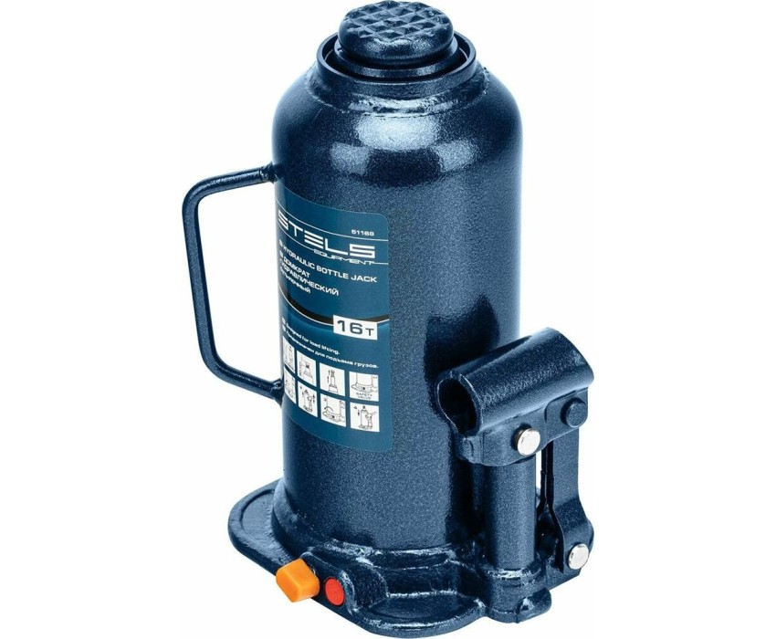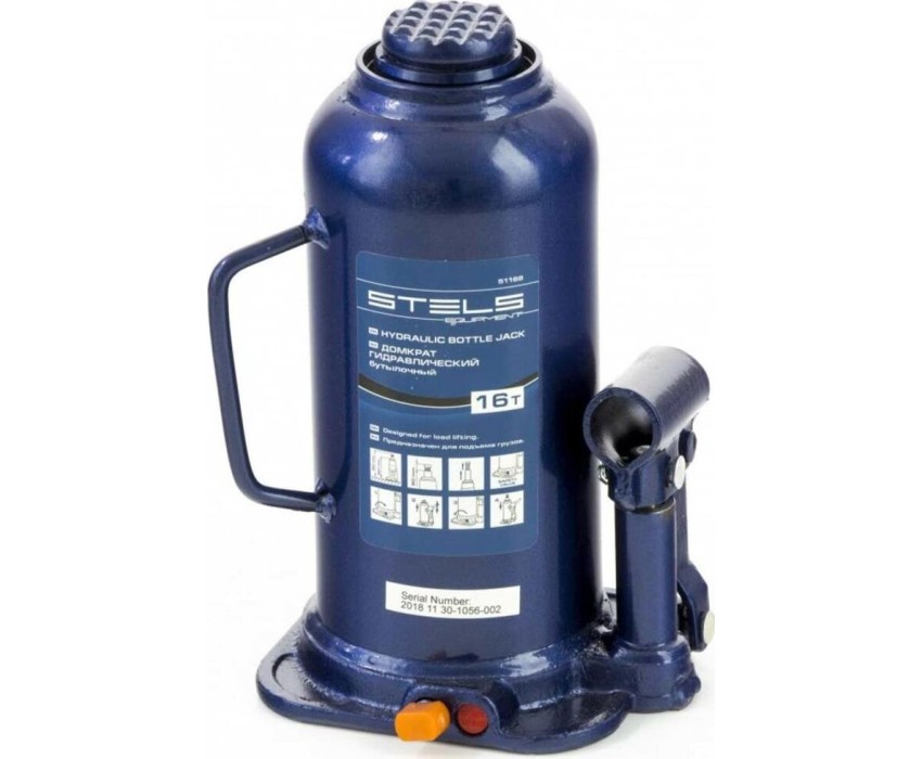Гидравлический бутылочный домкрат Stels 51168 применяется для быстрого поднятия грузов весом до 16 т на высоту 227-457 мм. Оптимален для автомобилей с большим клиренсом. Домкрат будет полезен автолюбителям и профессионалам для ремонта транспортного средства.ПреимуществаБезопасная эксплуатация — благодаря предохранительному клапану домкрат не поднимает грузы тяжелее 16 т.Прочность и долговечность — корпус выполнен из коррозионностойкой стали.Надежная конструкция — домкрат не имеет резьбовых соединений, т.к. корпус приварен к станине.