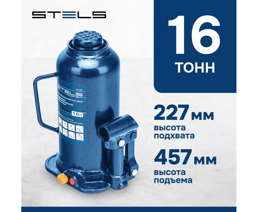 Домкрат STELS Домкрат гидравлический бутылочный, 16 т, h подъема 227-457 мм 51168