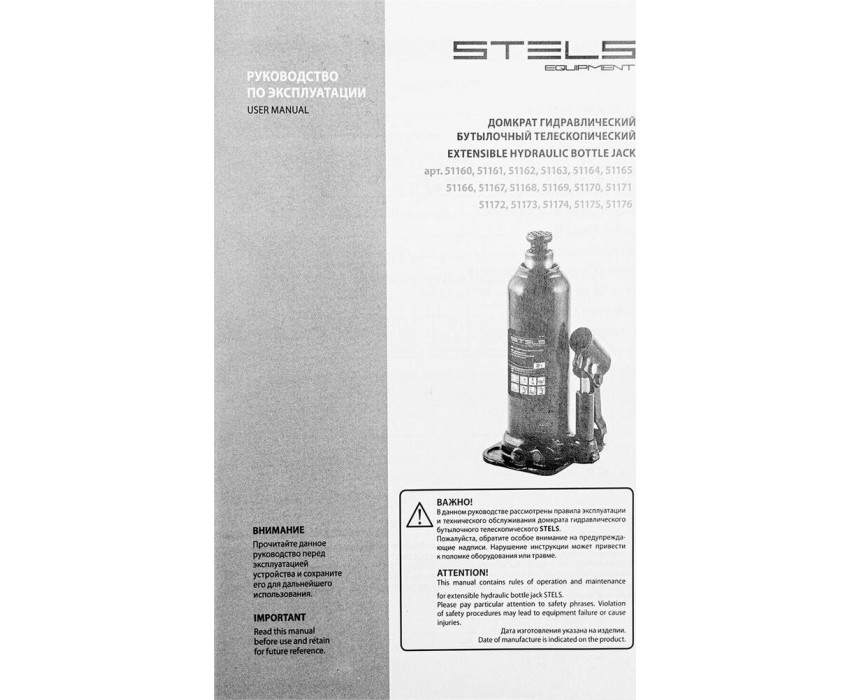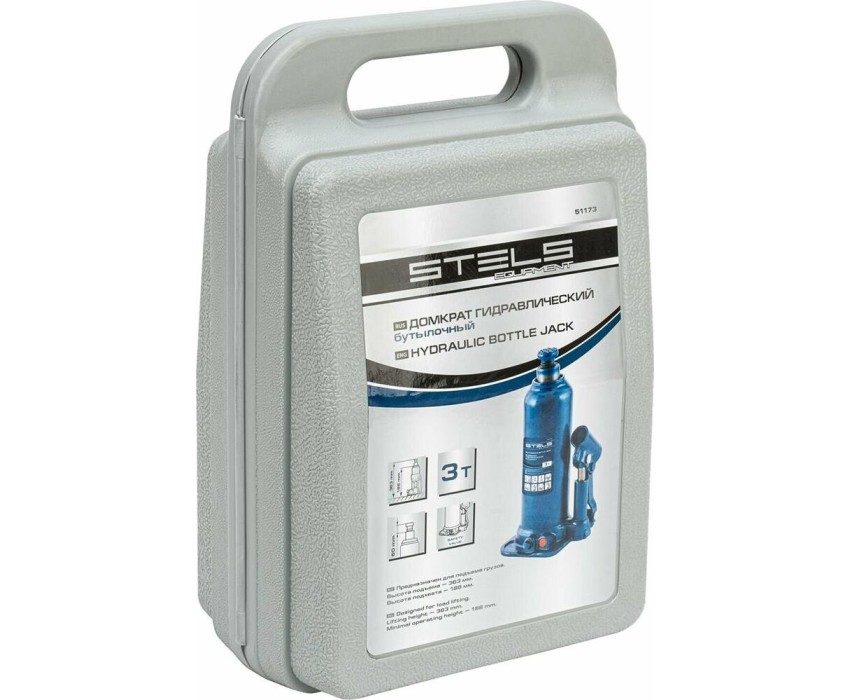 Домкрат STELS Домкрат гидравлический бутылочный, 3 т, h подъема 188-363 мм, в пластиковом кейсе 51173