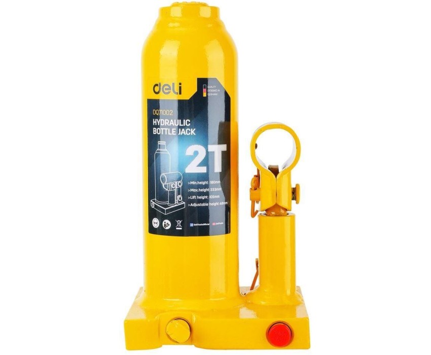Домкрат DELI Грузоподъёмное оборудование Домкрат бутылочный гидравлический DQ71002 макс.грузоподъемность 2 т, высота подхвата 180мм, высота подъема 333мм, рабочий ход 105мм, ход выдвижного винта 48мм