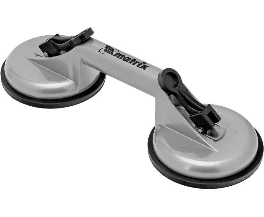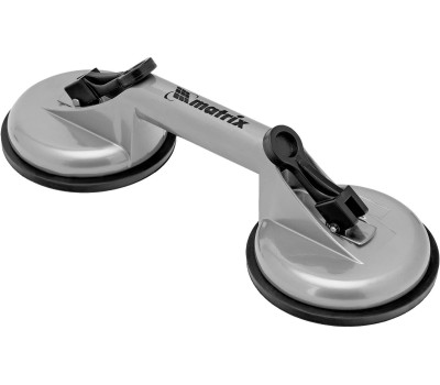 Алюминиевый двойной стеклодомкрат Matrix 875205 позволяет поднимать, переносить и устанавливать стекла, зеркала, плитку, листовой металл и другие гладкие материалы. Имеет две вакуумные присоски, которые бережно и надежно фиксируются на поверхности при помощи зажимов. Стеклодомкрат позволяет длительное время удерживать груз весом до 80 кг. Будет полезен во время строительства, ремонта, а также пригодится в быту. Преимущества Прочность — корпус изготовлен из алюминиевого сплава. Долговечность — стеклодомкрат устойчив к коррозии. Эргономичность — удобная рукоятка помогает удерживать груз.