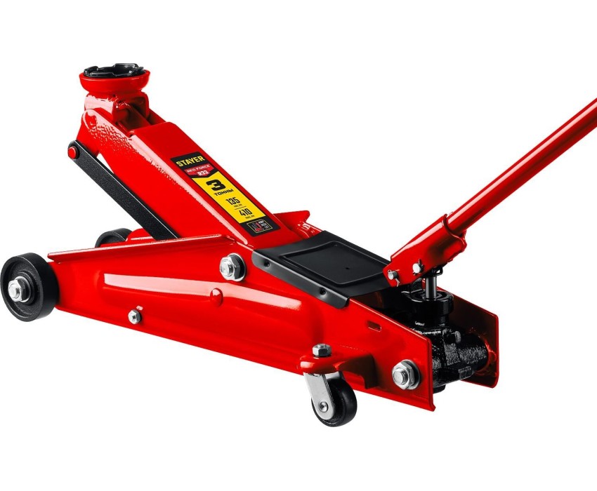 STAYER RED FORCE, 3 т, 135 - 410 мм, подкатной домкрат с увеличенным подъемом и поворотной ручкой, Professional (43151-3)
