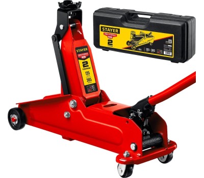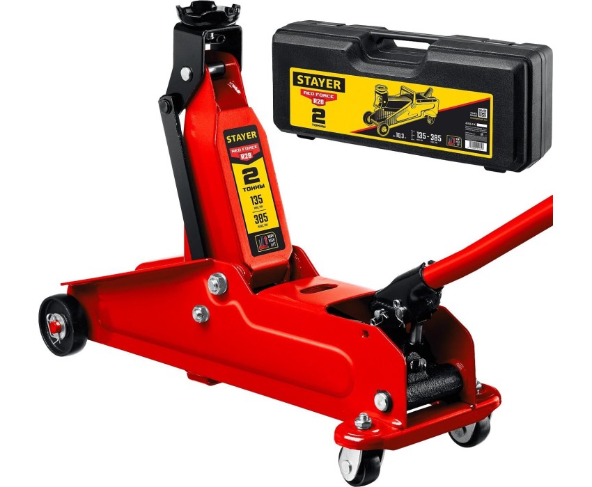 STAYER R-28 RED FORCE, в кейсе, 2 т, подкатной домкрат с увеличенным подъемом, Professional (43156-2-K)