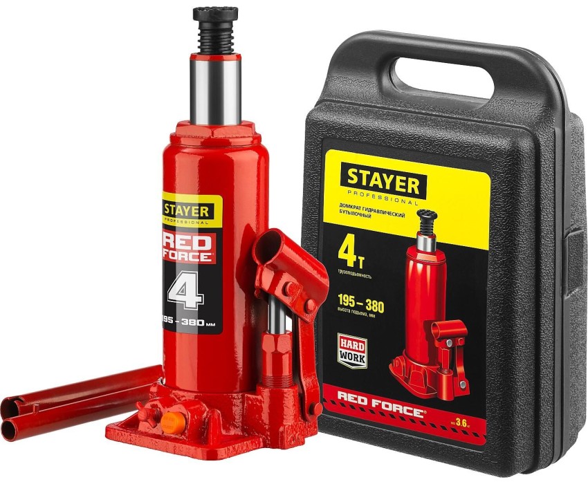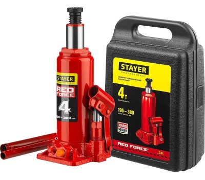 STAYER RED FORCE, в кейсе, 4 т, 195 - 380 мм, бутылочный гидравлический домкрат, Professional (43160-4-K)