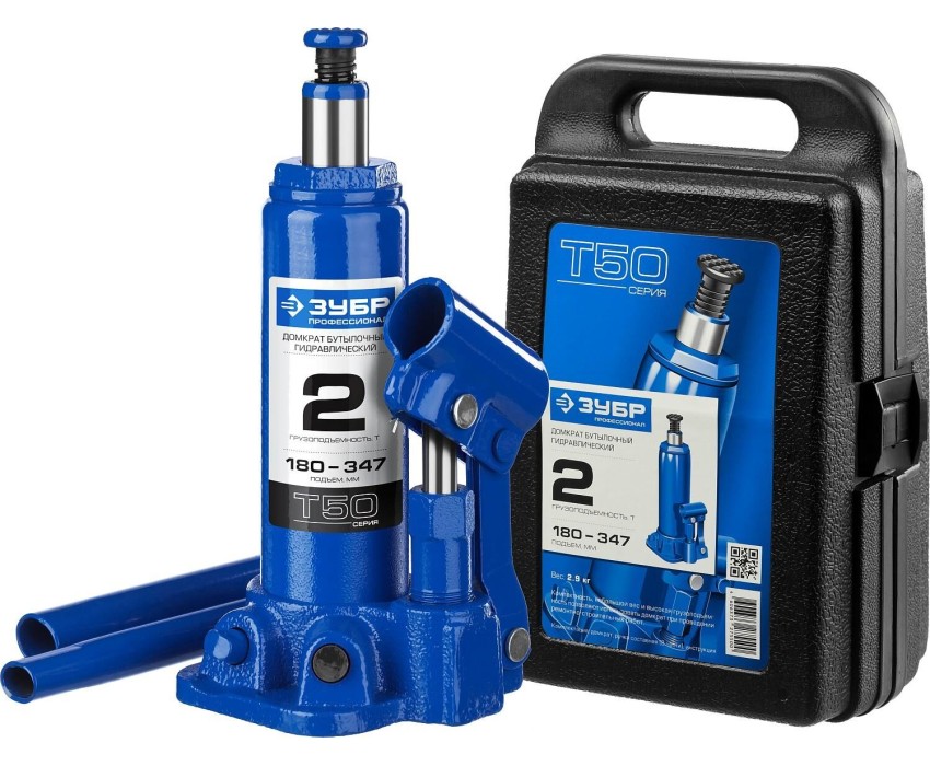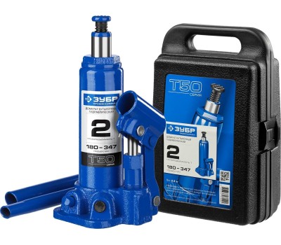 ЗУБР 2 т, 180 - 347 мм, бутылочный гидравлический домкрат в кейсе, Профессионал (43060-2-K)