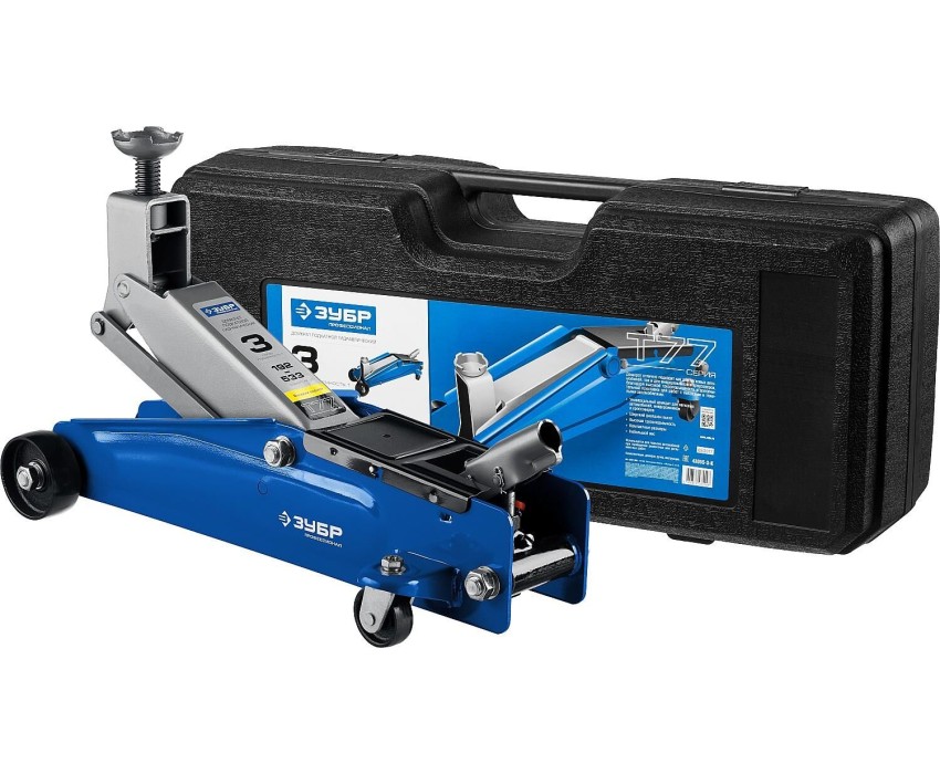 ЗУБР Т-77, 3 т, 192 - 533 мм, подкатной домкрат с высоким подъемом в кейсе, Профессионал (43055-3-K)