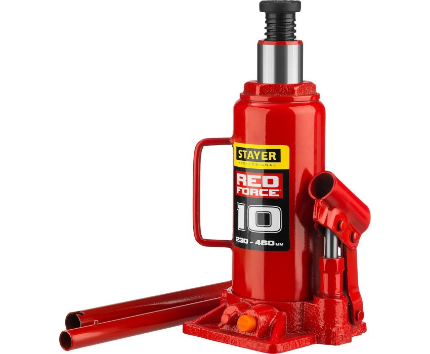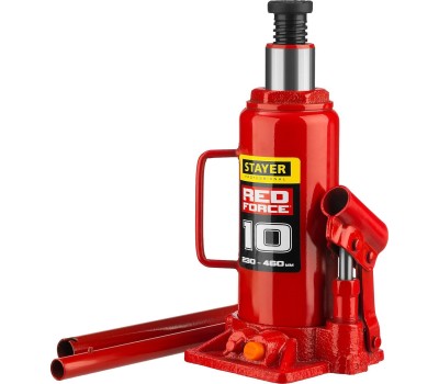 STAYER RED FORCE, 10 т, 230 - 460 мм, бутылочный гидравлический домкрат, Professional (43160-10)