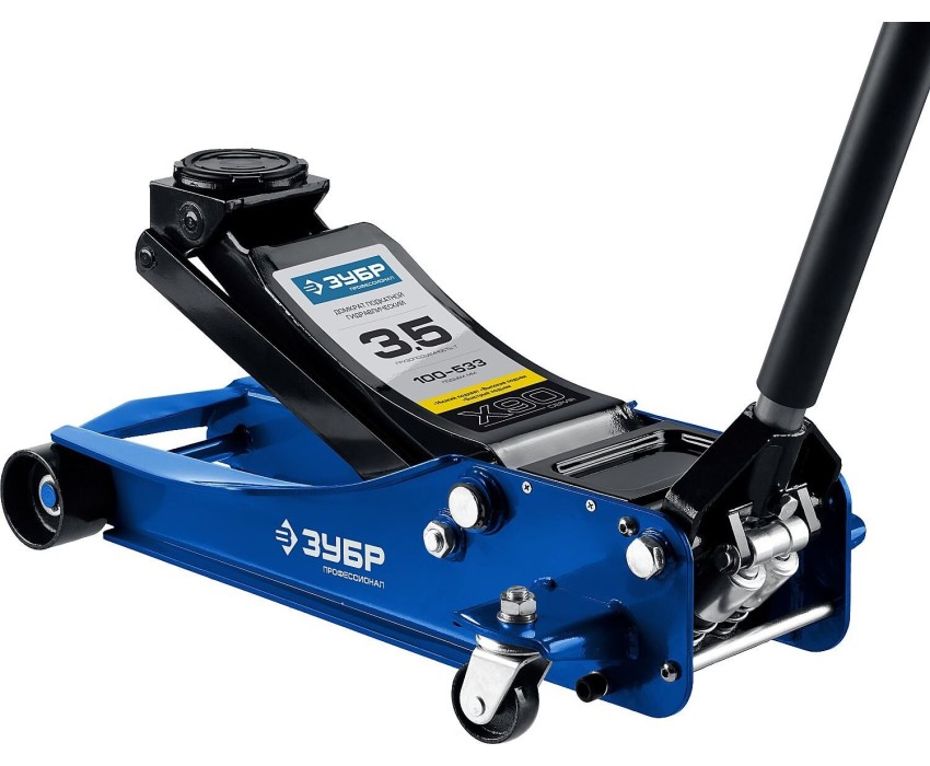 ЗУБР X90, 3.5 т, 100 - 533 мм, универсальный подкатной гидравлический домкрат для СТО, Профессионал (43054-3.5)