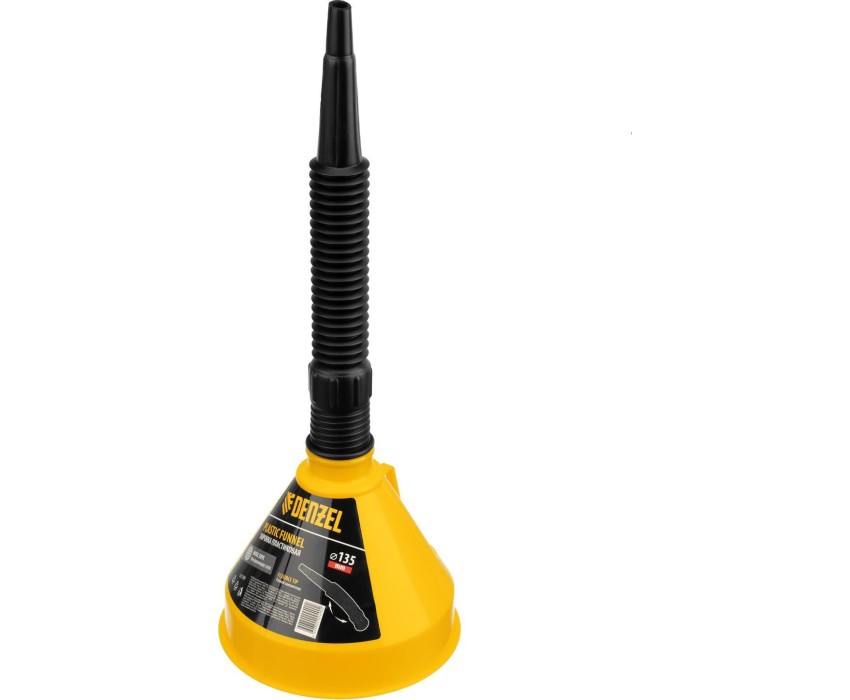 DENZEL Воронка пластиковая 135 мм с металлическим ситом и гибким наконечником 537209