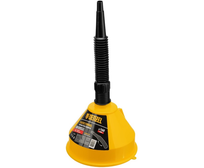 DENZEL Воронка пластиковая 160 мм с металлическим ситом, непроливайкой и гибким наконечником 537208