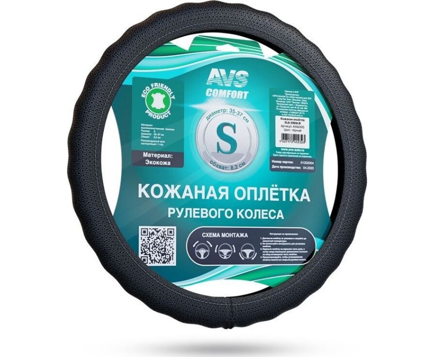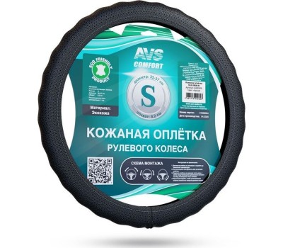 Оплетка на руль AVS SLE-296S-B Оплетка на руль (экокожа) (размер S, черный)