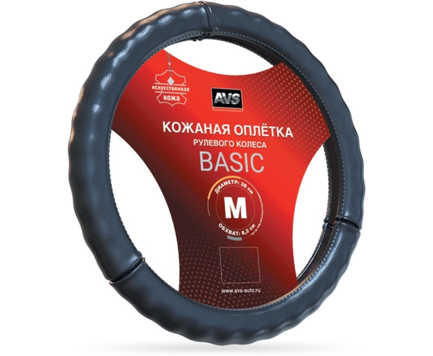 Оплетка на руль AVS Оплетка на руль (иск. кожа) IL-665M-B (размер M, черный) - Серия "Basic"