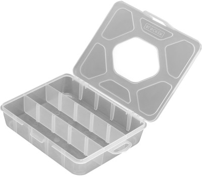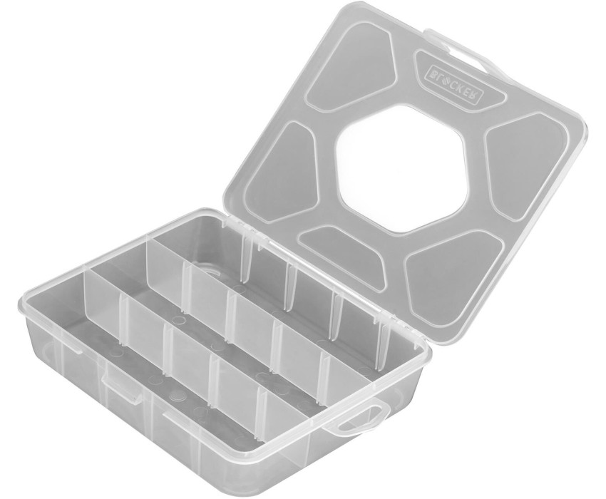 Универсальный малый органайзер Сибртех 90726 размером 190 х 160 х 45 мм, прозрачный матовый, используется для практичного хранения мелких предметов. Он подходит для распределения снастей, крепежа, хозяйственных мелочей и других предметов. Органайзер позволяет компактно расположить вещи в скрытых уголках квартиры: в шкафу, под кроватью и т.д. Преимущества Полипропиленовый корпус — вещи защищены от влаги и пыли. Полупрозрачное исполнение — не нужно открывать крышку, чтобы увидеть содержимое органайзера. Переставные перегородки — размер ячеек можно регулировать для сортировки мелких и больших предметов.