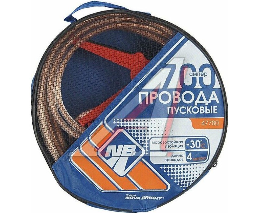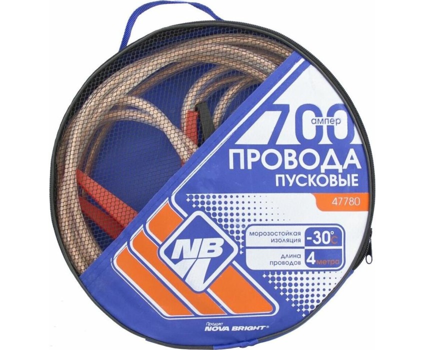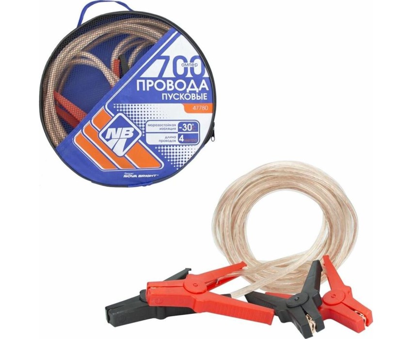 Провода пусковые NOVA BRIGHT 700А с прозрачной изоляцией, в сумке, 4,0м 47780