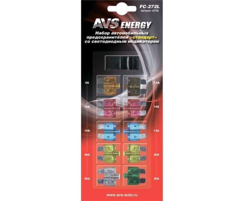 Набор предохранителей AVS Набор предохранителей со светодиодом FC-272L "стандарт" в блистере