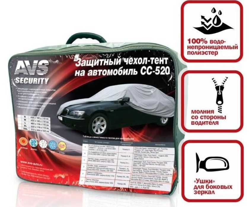 Чехол-тент защитный AVS СС-520 4XL на автомобиль 572х203х122см (водонепроницаемый) 43420