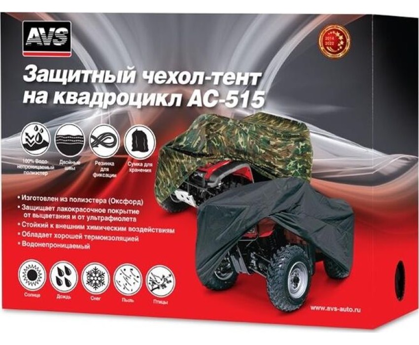 Чехол-тент защитный AVS AC-515 M на квадроцикл 208х122х78см (водонепроницаемый) чёрный 43441