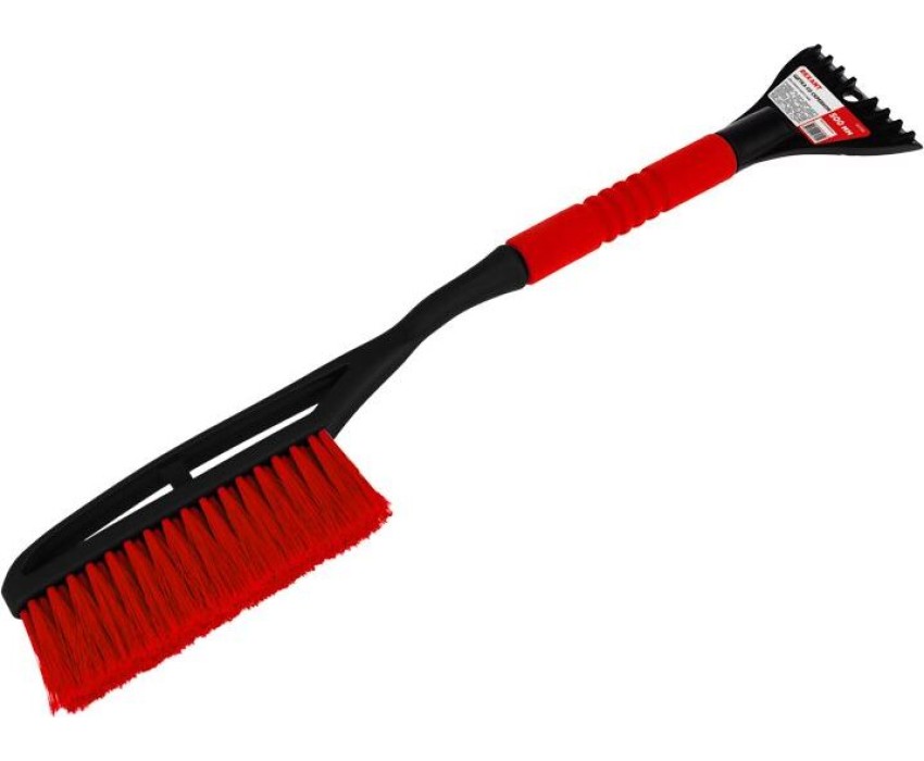 Щетка оснащена четырехрядной щетиной и надежным скребком для удаления участков наледи.